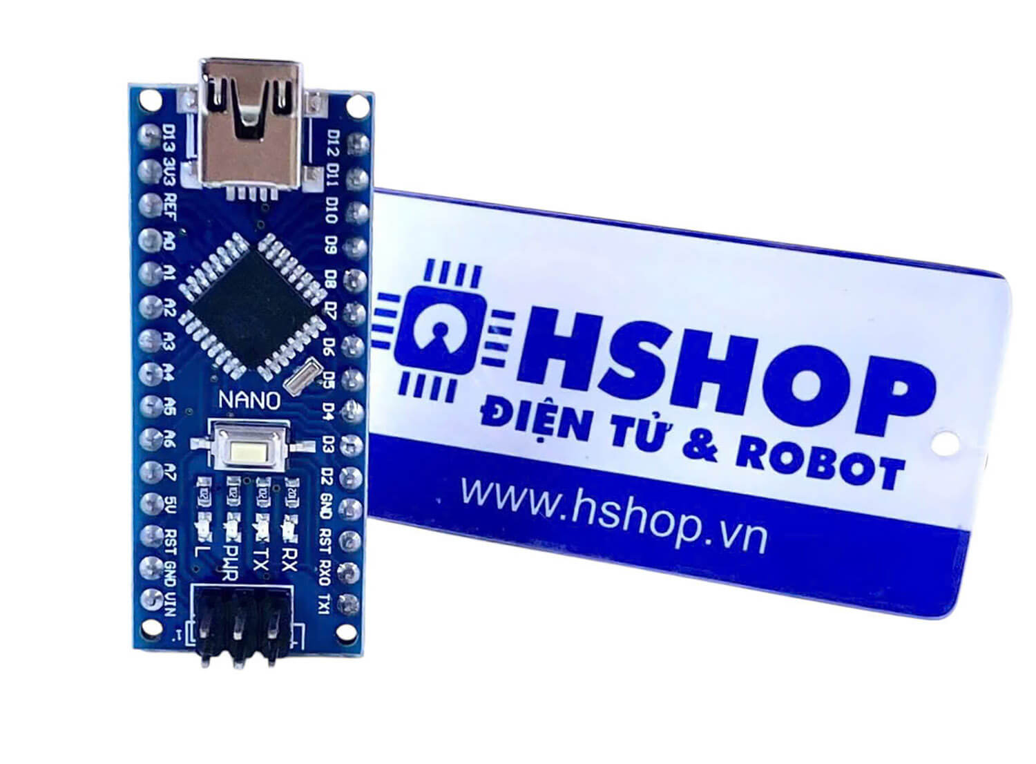 Mạch Nano CH340 (Arduino Nano Compatible) có thiết kế tương thích với Arduino Nano là phiên bản nhỏ gọn của Arduino Uno sử dụng MCU ATMEGA328P-AU, mọi tính năng hay chương trình chạy trên Arduino Uno đều có thể sử dụng trên Arduino Nano, một ưu điểm của Arduino Nano là vì sử dụng phiên bản IC dán nên sẽ có thêm 2 chân Analog A6, A7 so với Arduino Uno.