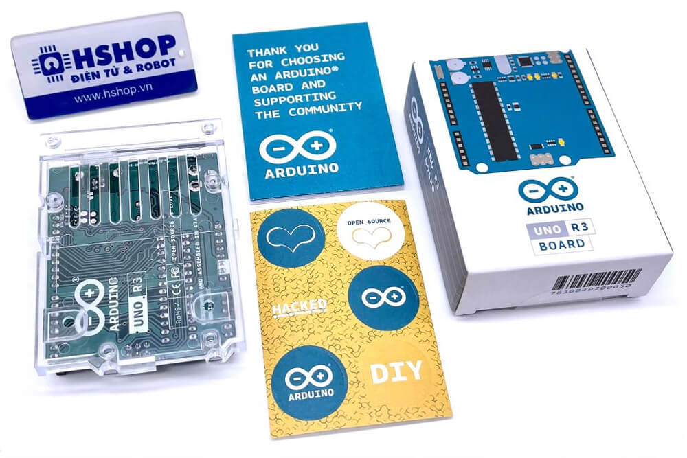 Arduino Uno Rev3 chính hãng (Original - Made in Italy) được Hshop.vn là đại lý uỷ quyền phân phối và nhập khẩu từ Arduino.cc với chất lượng linh kiện, chất lượng gia công và độ bền vượt trội kèm theo chính sách bảo hành và hậu mãi theo đúng tiêu chuẩn Arduino.