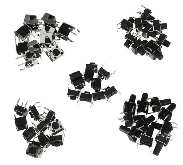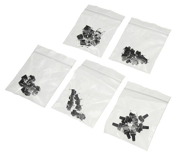 Bộ 5 loại công tắc nhấn thông dụng (5 kind tact switch button) bao gồm 5 loại công tắc nhấn (tact switch) thông dụng với số lượng mỗi loại 10 con (tổng 50 con) giúp bạn dễ dàng thực hiện các thí nghiệm trên Breadboard với các module, vi điều khiển, cảm biến,...