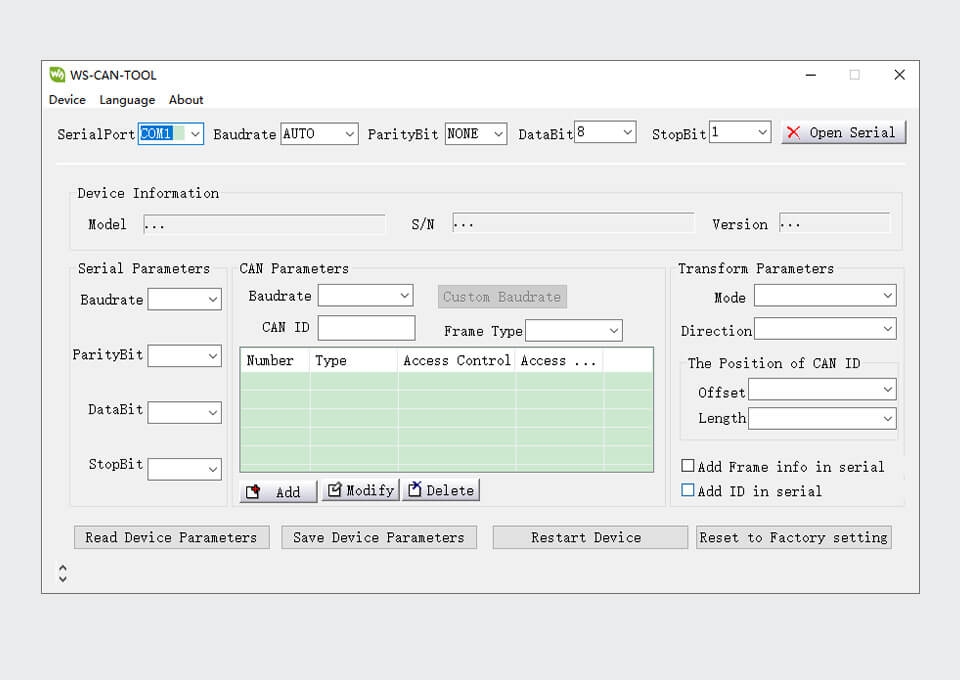 - CAN baud rate: 10kbps~1000kbps, configurable CAN baud rate.