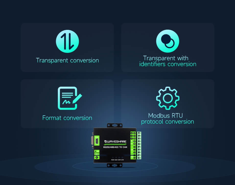 Bộ chuyển Waveshare RS232/485/422 To CAN Industrial Isolated Converter có chức năng: