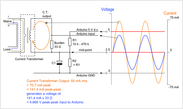 Nguyên lý đo dòng AC bằng cảm biến dòng và Arduino:
