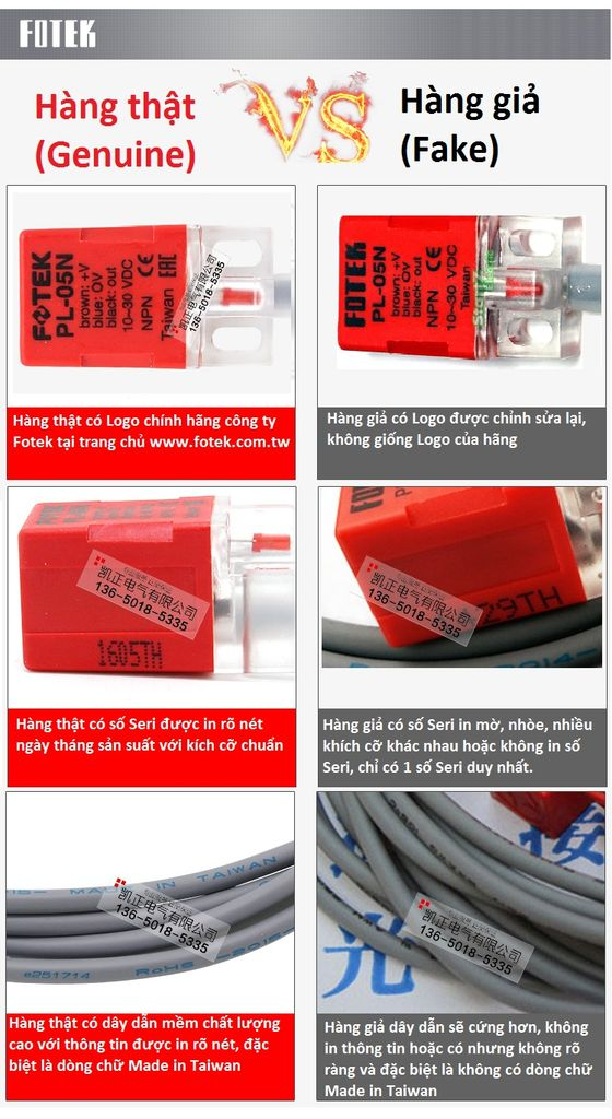 Cảm biến kim loại tiệm cận Fotek PL-05N chính hãng được sản xuất bởi chính hãng Fotek với chất lượng, độ bền, độ chính xác và độ ổn định vượt trội so với các loại làm giả, nhái trên thị trường.
