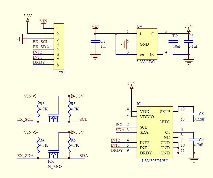 Cảm biến la bàn số và gia tốc GY-511 LSM303DLHC có khả năng đo 3 trục gia tốc hướng (Accelerometer) và 3 trục từ trường (Magnetometer), thường được dùng để xác định hướng chuyển động và hướng từ trường của trái đất nhằm xác định phương hướng với độ chính xác cao.
