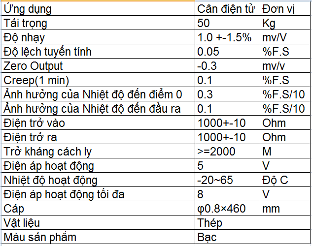 Cảm biến Loadcell 50Kg sử dụng để đo khối lượng của vật thể tối đa 50Kg, cảm biến bằng kim loại với thiết kế rất dễ lắp đặt, phù hợp với các ứng dụng cân điện tử, cảm biến khối lượng,..., lưu ý để sử dụng với Vi điều khiển cần mua thêm Mạch chuyển đổi ADC HX711 chuyên dụng dành cho Loadcell.