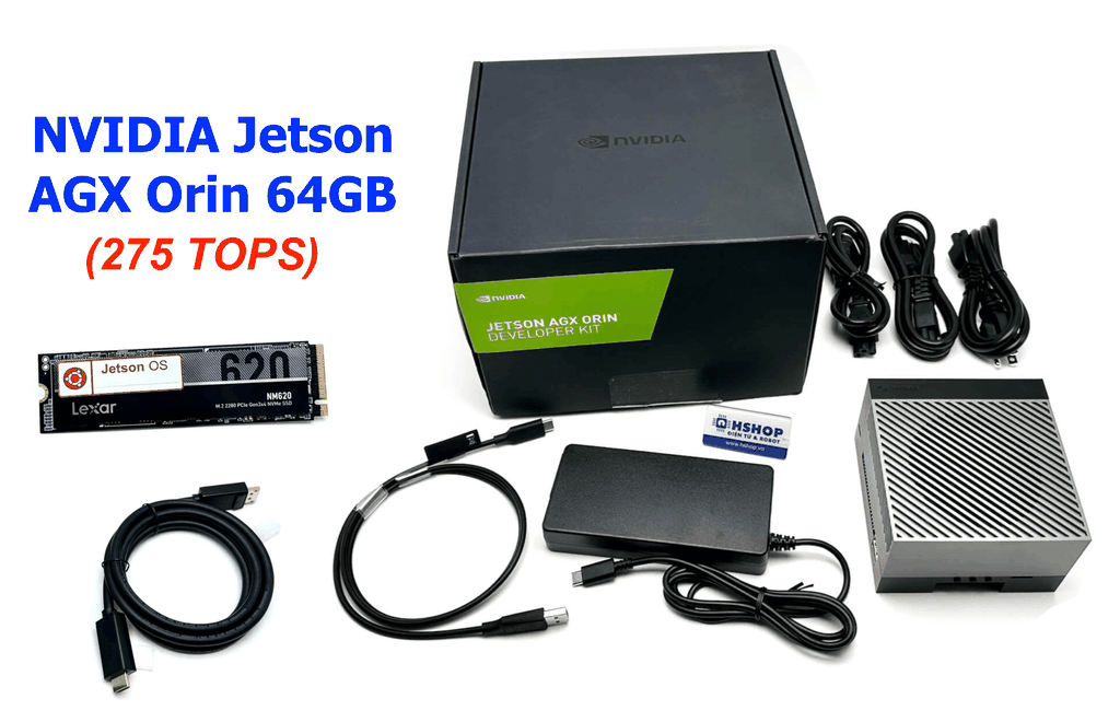 Combo NVIDIA Jetson AGX Orin 64GB Pro Kit (275 TOPS) bao gồm Máy tính nhúng AI NVIDIA Jetson AGX Orin 64GB Developer Kit (275 TOPS) và các phụ kiện để máy có thể hoạt động ổn định với hiệu suất cao, bao gồm: