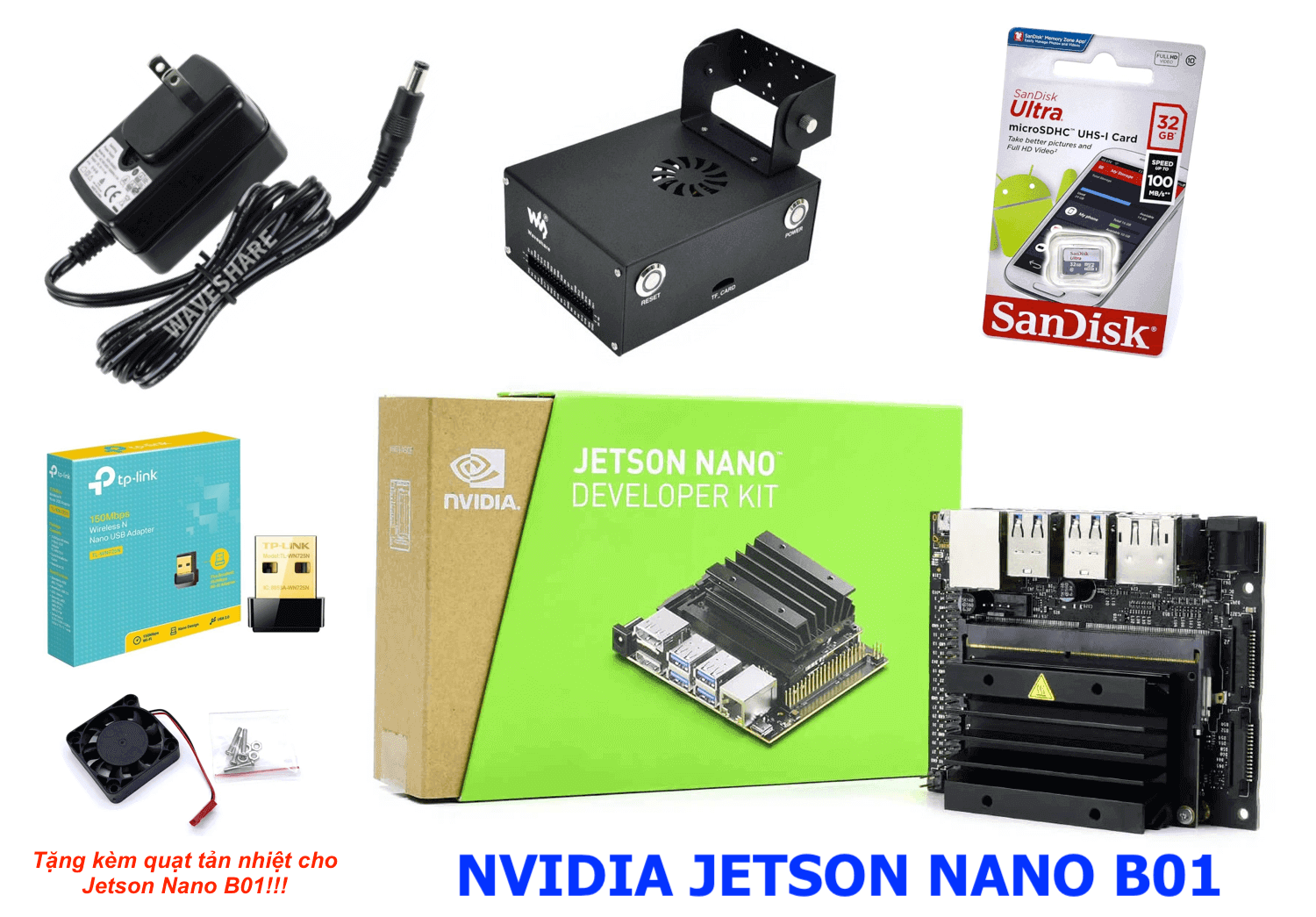 Combo NVIDIA Jetson Nano B01 Basic Kit bao gồm Máy tính AI NVIDIA Jetson Nano Developer Kit B01 và các phụ kiện cơ bản để máy có thể hoạt động, bao gồm: