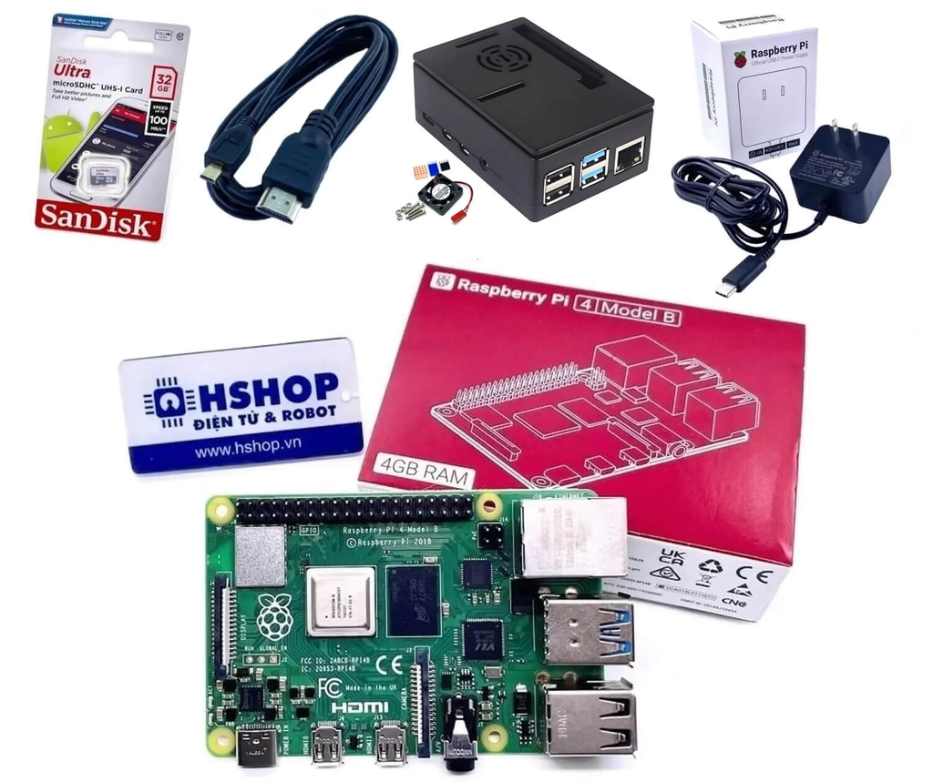 Lưu ý: Quý Khách có thể vào đây để mua thêm các phụ kiện cho Raspberry Pi (cáp HDMI, Camera, Màn hình cảm ứng,...) hoặc các loại HAT (Shield), Module bổ sung chức năng cho Raspberry Pi.