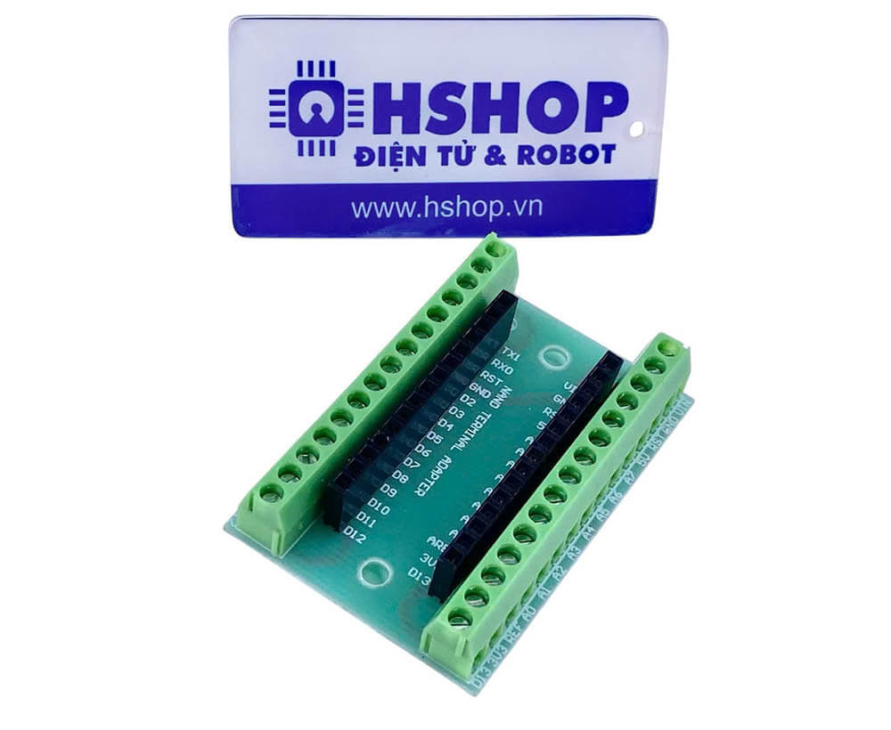 ế ra chân Nano I/O Shield V1 (Arduino Nano Compatible) được sử dụng với Arduino Nano giúp chuyển từ dạng chân rào cắm của Arduino Nano sang dạng chân Domino giúp dễ dàng bắt các loại dây điện vào domino bằng tua vít dễ dàng, chắc chắn, đế tương thích với các loại Arduino Nano có tại Hshop.vn.