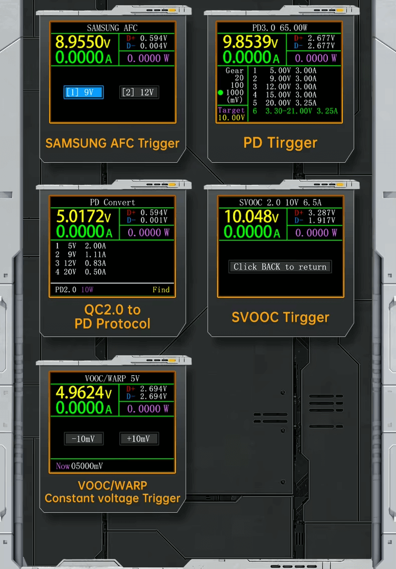 Đo dòng áp, công suất cổng USB đa năng FNIRSI® FNB48P USB Fast Charge Tester được tích hợp màn hình LCD TFT 1.77inch giúp hiển thị các thông số trực quan, tích hợp các cổng đầu vào thông dụng USB-A, USB-C, MicroUSB và hai cổng đầu ra USB-A / USB-C giúp kết nối và kiểm tra điện áp của hầu hết các thiết bị sử dụng cổng USB phổ biến hiện nay.