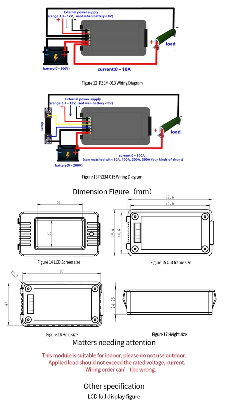Đồng hồ đo pin, tải DC đa năng 200A PZEM-015 được sử dụng để đo và theo dõi hầu hết các thông số của pin và tải tiêu thụ DC: Điện áp, dòng điện, công suất, năng lượng, trở kháng,..., đồng hồ có màn hình LCD hiển thị trực quan các thông số chuyên nghiệp, dễ dàng lắp đặt và sử dụng kèm trở Shunt 200A.