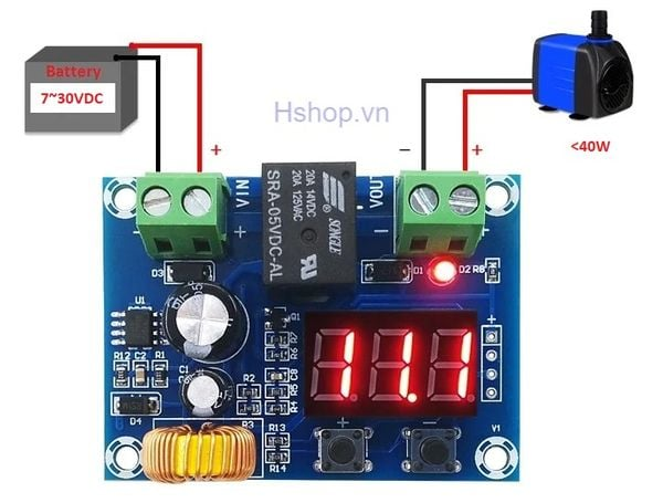 Mạch đo và bảo vệ thấp áp cho pin, tải, ắc quy M609 được sử dụng để đo điện áp, thiết đặt mức bảo vệ khi điện áp dưới mức quy định (sẽ ngắt tải) để bảo vệ cho pin, tải, ắc quy hoạt động ổn định ở mức điện áp mong muốn.