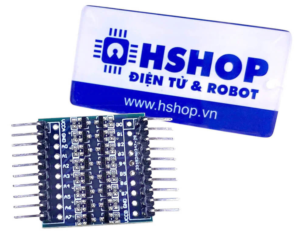 Mạch chuyển mức tín hiệu 8CH BI-DIRECTIONAL TTL LEVEL SHIFTER được sử dụng để chuyển mức tín hiệu giữa hai bo mạch sử dụng khác mức điện áp giao tiếp (như 3.3VDC và 5VDC), mạch sử dụng MOSFET chuyên dụng BSS138 cùng với điện trở kéo lên 10k Ohm.