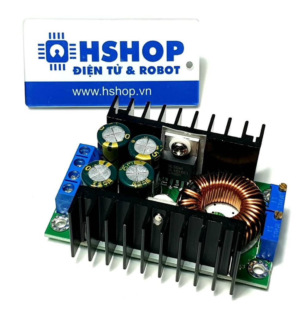 Mạch giảm áp DC-DC Buck 12A có chỉnh dòng được sử dụng để giảm áp, cấp nguồn cho tải có công suất lớn, mạch sử dụng FET với phương pháp giảm áp xung và tản nhiệt đi kèm cho hiệu suất chuyển đổi lên đến 95% và toả nhiệt thấp, mạch còn được trang bị thêm 4 tụ công suất lớn để giảm nhiễu đầu ra của nguồn, tích hợp 2 biến trở để điều chỉnh áp và dòng giới hạn (CV, CC).