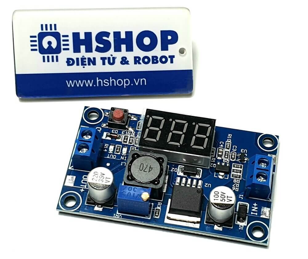 Mạch giảm áp DC-DC Buck LM2596 3A có hiển thị với Led 7 đoạn hiển thị nguồn ngõ ra / vào tùy chỉnh tiện dụng, mạch cho dòng điện ngõ ra lên đến 3A.