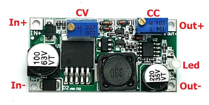 Mạch giảm áp DC-DC Buck High Voltage LM2596HVS 3A có chỉnh dòng sử dụng IC giảm áp xung LM2596HVS (High Voltage) nên có mức điện áp đầu vào lớn từ 5~55VDC so với các mạch giảm áp sử dụng IC LM2596 thông thường, mạch được tích hợp biến trở điều chỉnh điện áp (CV) và hạn dòng đầu ra (CC), led báo quá dòng.