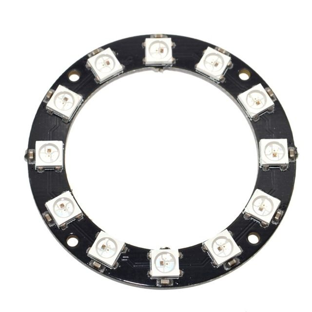 Mạch hiển thị NeoPixel Ring 12 RGB LED WS2812 bao gồm 12 Led RGB WS2812 giao tiếp nối tiếp qua chuẩn giao tiếp 1 wire (chỉ cần 1 chân data duy nhất), mạch rất dễ sử dụng với bộ thư viện hỗ trợ đi kèm với khả năng hiển thị của mỗi Led lên đến 16777216 màu và 256 cấp độ sáng khác nhau, phù hợp cho các ứng dụng trang trí, hiển thị: đồng hồ led, vòng đeo tay led,...