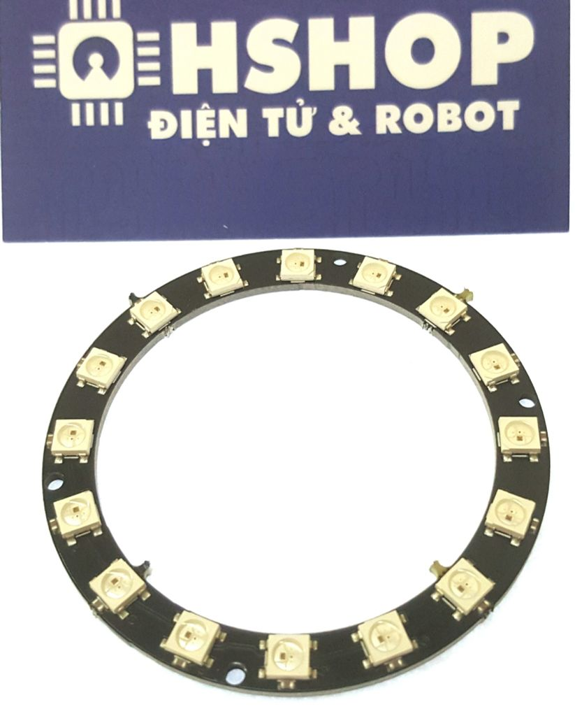 Mạch hiển thị NeoPixel Ring 16 RGB LED WS2812 bao gồm 16 Led RGB WS2812 giao tiếp nối tiếp qua chuẩn giao tiếp 1 wire (chỉ cần 1 chân data duy nhất), mạch rất dễ sử dụng với bộ thư viện hỗ trợ đi kèm với khả năng hiển thị của mỗi Led lên đến 16777216 màu và 256 cấp độ sáng khác nhau, phù hợp cho các ứng dụng trang trí, hiển thị: đồng hồ led, vòng đeo tay led,...