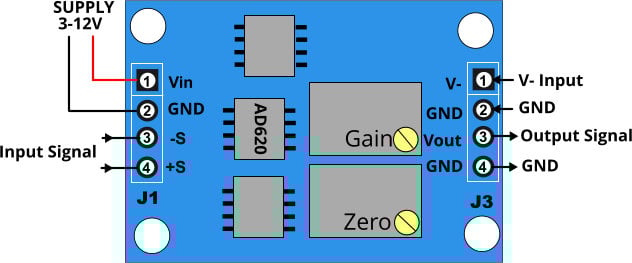Mạch khuếch đại tín hiệu Amplifier Signal Microvolt / Millivolt Voltage Module AD620 được sử dụng để khuếch đại tín hiệu điện Analog siêu nhỏ AC hoặc DC (mV, µV) thành tín hiệu lớn hơn để có thể đọc và xử lý được bằng Vi điều khiển, mạch có khả năng khuếch đại lên đến 1000 lần, thích hợp cho cách ứng dụng khuếch đại tín hiệu từ cảm biến,....