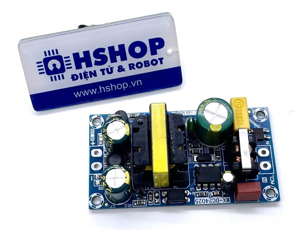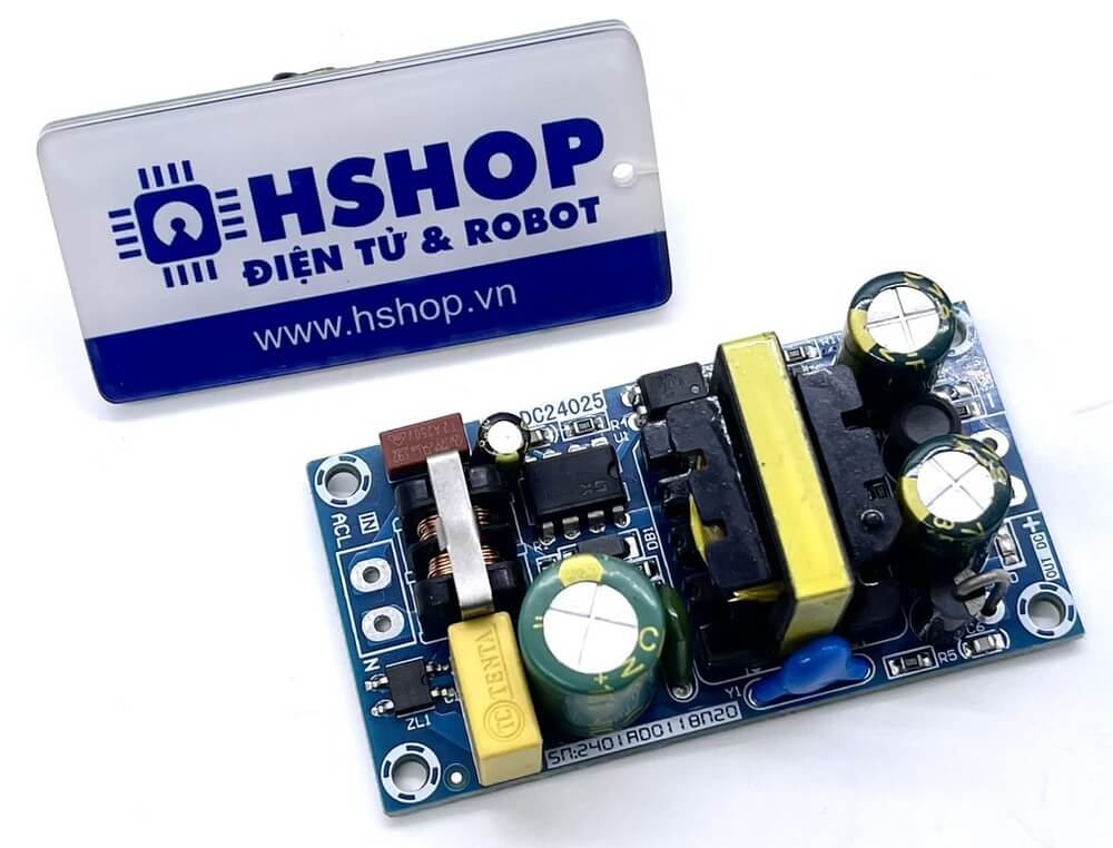 Mạch Nguồn Xung AC-DC 24VDC 24W được sử dụng để chuyển điện áp AC sang DC với công suất đầu ra tối đa 24W, mạch có chất lượng tốt, tích hợp mạch lọc, cách ly, chống nhiễu, bảo vệ an toàn.