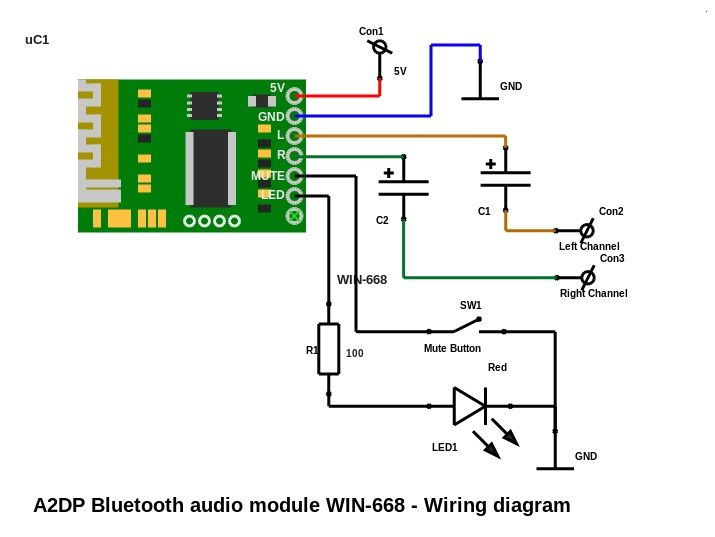Mạch phát âm thanh Bluetooth 4.0 A2DP WIN-668 có giá thành rẻ, thường được sử dụng trong các ứng dụng phát âm thanh qua Bluetooth kết nối với điện thoại, máy tính bảng,..., mạch có rào cắm ra chân giúp kết nối dễ dàng và sử dụng điện áp 5VDC thông dụng.