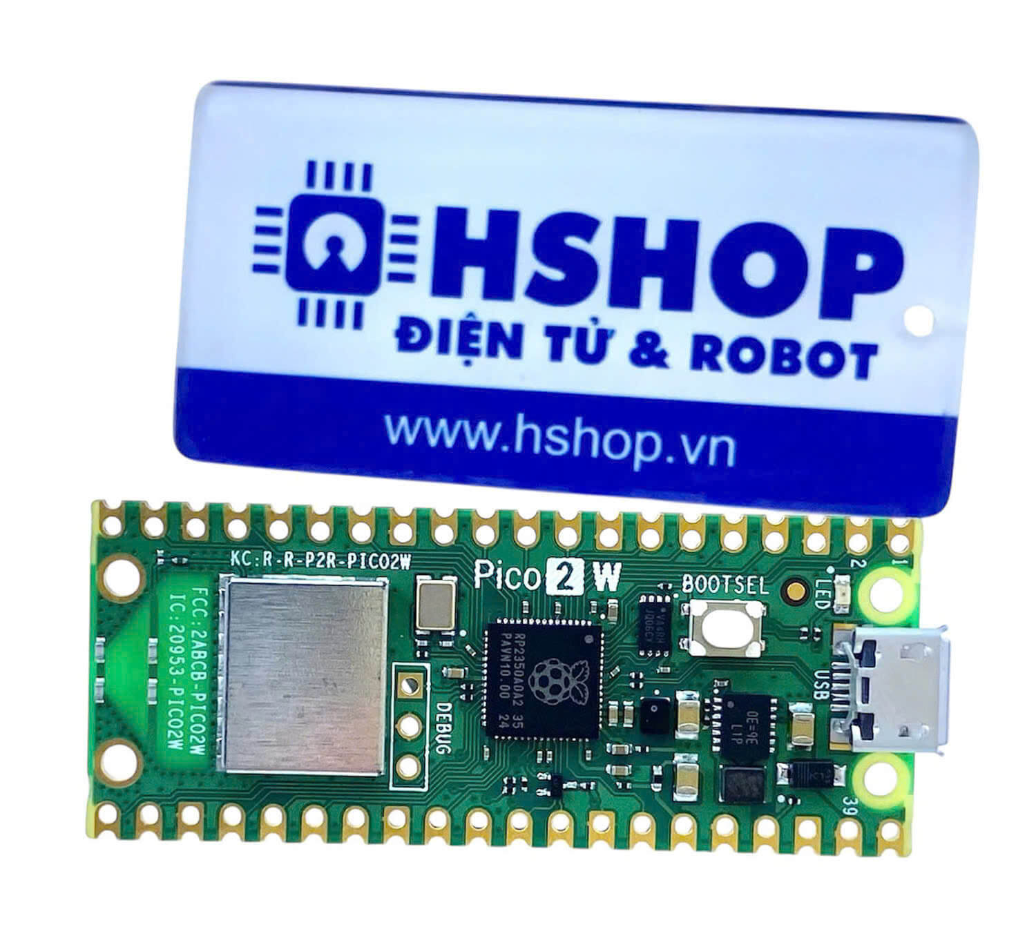 Mạch Raspberry Pi Pico 2 W là phiên bản nâng cấp của dòng vi điều khiển Pico, được trang bị chip RP2350 mới do Raspberry Pi thiết kế và kết nối Wifi + Bluetooth, mang lại hiệu năng cao hơn và nhiều tính năng mở rộng so với đời trước.