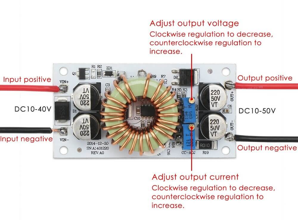 Mạch tăng áp DC-DC Boost Converter 250W được sử dụng để nâng điện áp DC lên mức mong muốn với khả năng tăng áp tối đa lên đến 50VDC / 250W, mạch có thiết kế nhỏ gọn, dễ sử dụng với hai biến trở điều chỉnh dòng và áp đầu ra, mạch sử dụng linh kiện chất lượng tốt, độ bền cao.