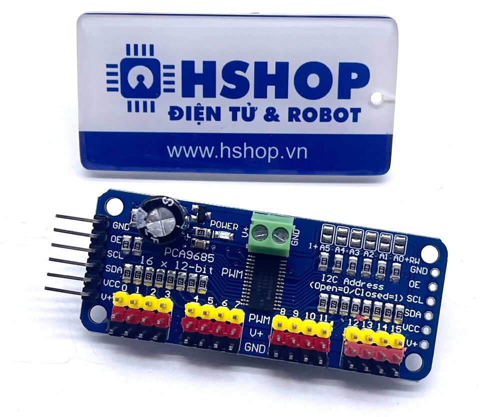 Mạch điều khiển 16 Chanel PWM PCA9685 được sử dụng để có thể xuất ra đồng thời 16 xung PWM từ 16 cổng khác nhau thông qua giao tiếp I2C sử dụng IC PCA9685, giúp bạn có thể điều khiển đồng thời 16 RC Servo hoặc Dimmer 16 thiết bị đồng thời,...
