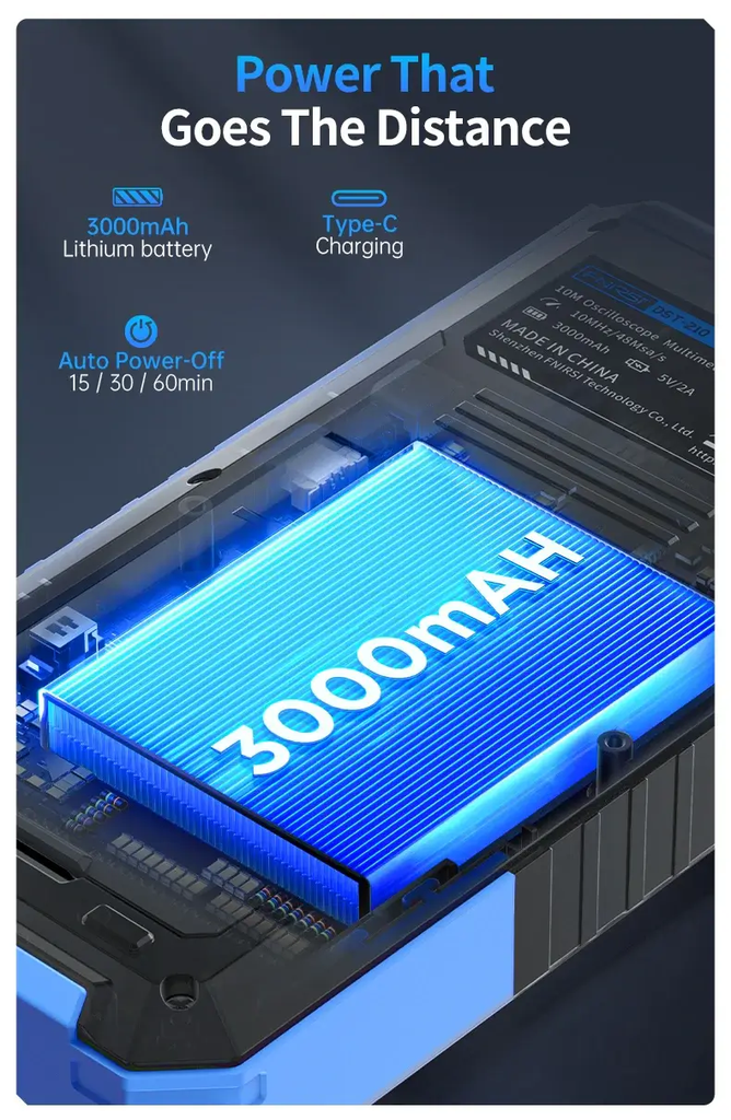 Máy đo hiện sóng FNIRSI® DST-210 Handheld 3-IN-1 Multimeter Oscilloscope Signal Generator nổi bật với khả năng đo chính xác cao (4.5 digit True RMS), tích hợp ghi dữ liệu, lưu dạng sóng và phân tích tín hiệu. Đặc biệt, phiên bản DST-210 có hiệu năng mạnh mẽ với băng thông 10MHz và tốc độ lấy mẫu 48MSa/s, phù hợp cho các ứng dụng phân tích tín hiệu chuyên sâu. Thiết bị còn được trang bị pin sạc 3000mAh, hỗ trợ làm việc di động lên đến 15 giờ, cùng các tính năng an toàn như bảo vệ quá tải và cảnh báo pin yếu.