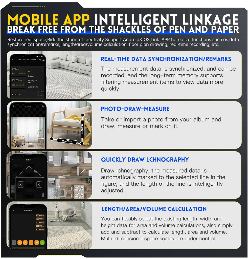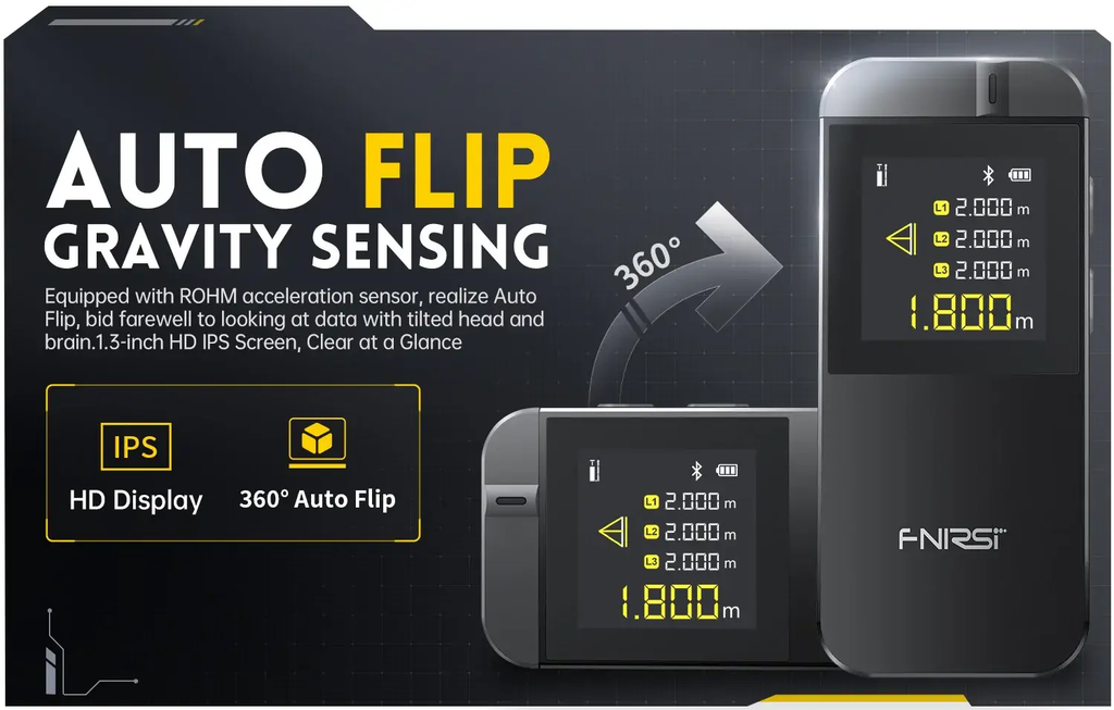 Máy đo khoảng cách FNIRSI® IR40 Smart Laser Rangefinder là thước đo khoảng cách laser thông minh, nhỏ gọn, hỗ trợ Bluetooth kết nối ứng dụng, cảm biến xoay tự động, đo nhanh và chính xác. Sản phẩm phù hợp cho trang trí nội thất, đo đạc công trình, bất động sản và nhiều ứng dụng thực tế.