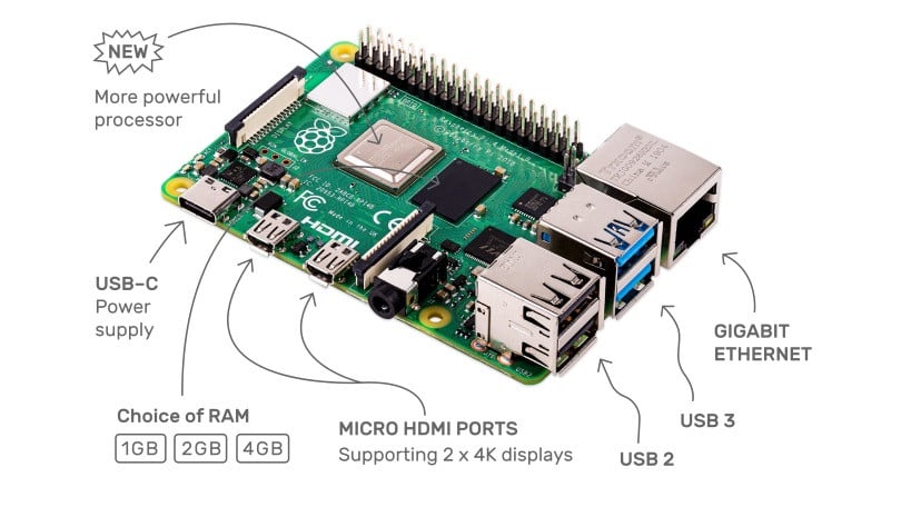 Máy tính Raspberry Pi 4 Model B 4GB (Made in UK) là phiên bản Raspberry Pi mới nhất hiện nay được Hshop.vn nhập khẩu chính hãng với những cải tiến vượt trội so với phiên bản cũ: CPU mạnh hơn, Ram 4GB, dual-display Micro HDMI 4K,..., là sự lựa chọn phù hợp cho các ứng dụng: IoT, Robot, Smart Home, Media Centre, AI,...