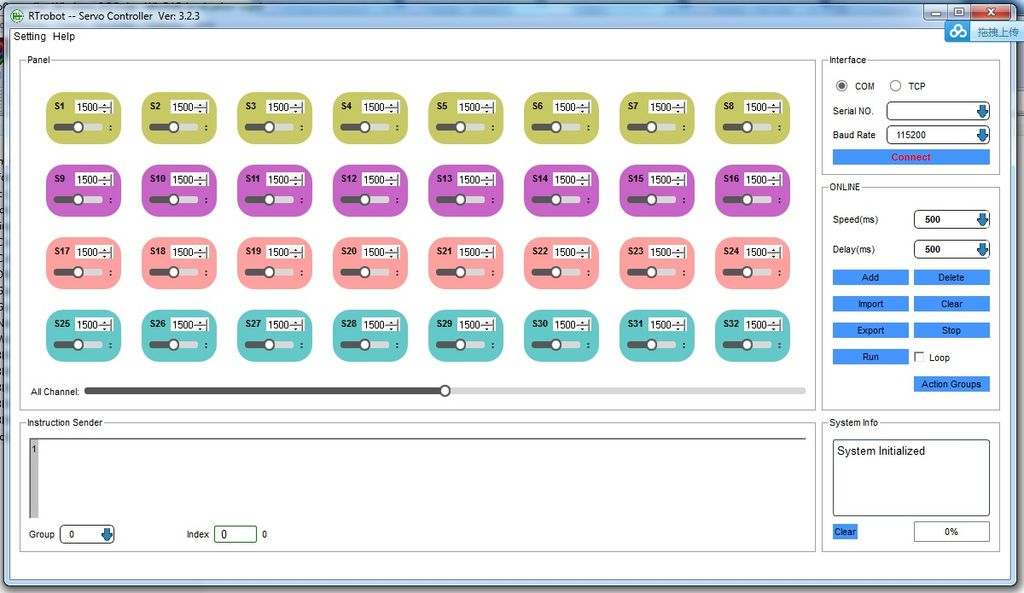 Mạch điều khiển 32 RC Servo controller có cách sử dụng và kết nối dễ dàng, phần mềm của mạch chạy trên hầu hết các hệ điều hành phổ biến hiện nay: Windows 7, Linux, MacOS, Android,... (Không hổ trợ với Windows 8 trở về sau)