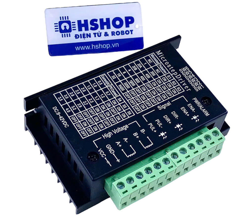 Bộ điều khiển động cơ bước Stepper Motor Driver Microstep 3.5A 40VDC sử dụng IC Driver là SI09AFTG của Japan cho khả năng điều khiển động cơ bước 2 pha với công suất tối đa lên đến 3.5A 40VDC, chức năng và cách sử dụng hoàn toàn tương tự với Driver TB6600 thường thấy trên thị trường tuy nhiên độ phân giải tăng đến 1/32 step. Driver có thiết kế vỏ kim loại chống nhiễu, chắc chắn, bền bỉ, với tản nhiệt lớn cho hoạt động ổn định cao nhất.