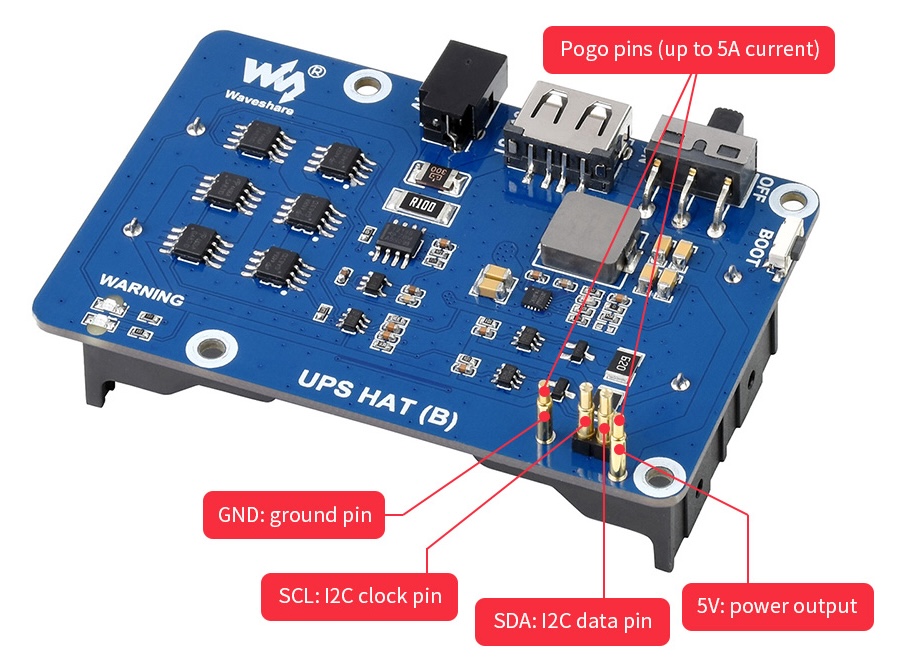 Mạch Waveshare UPS HAT (B) for Raspberry Pi, 5V 5A , Pogo Pins Connector