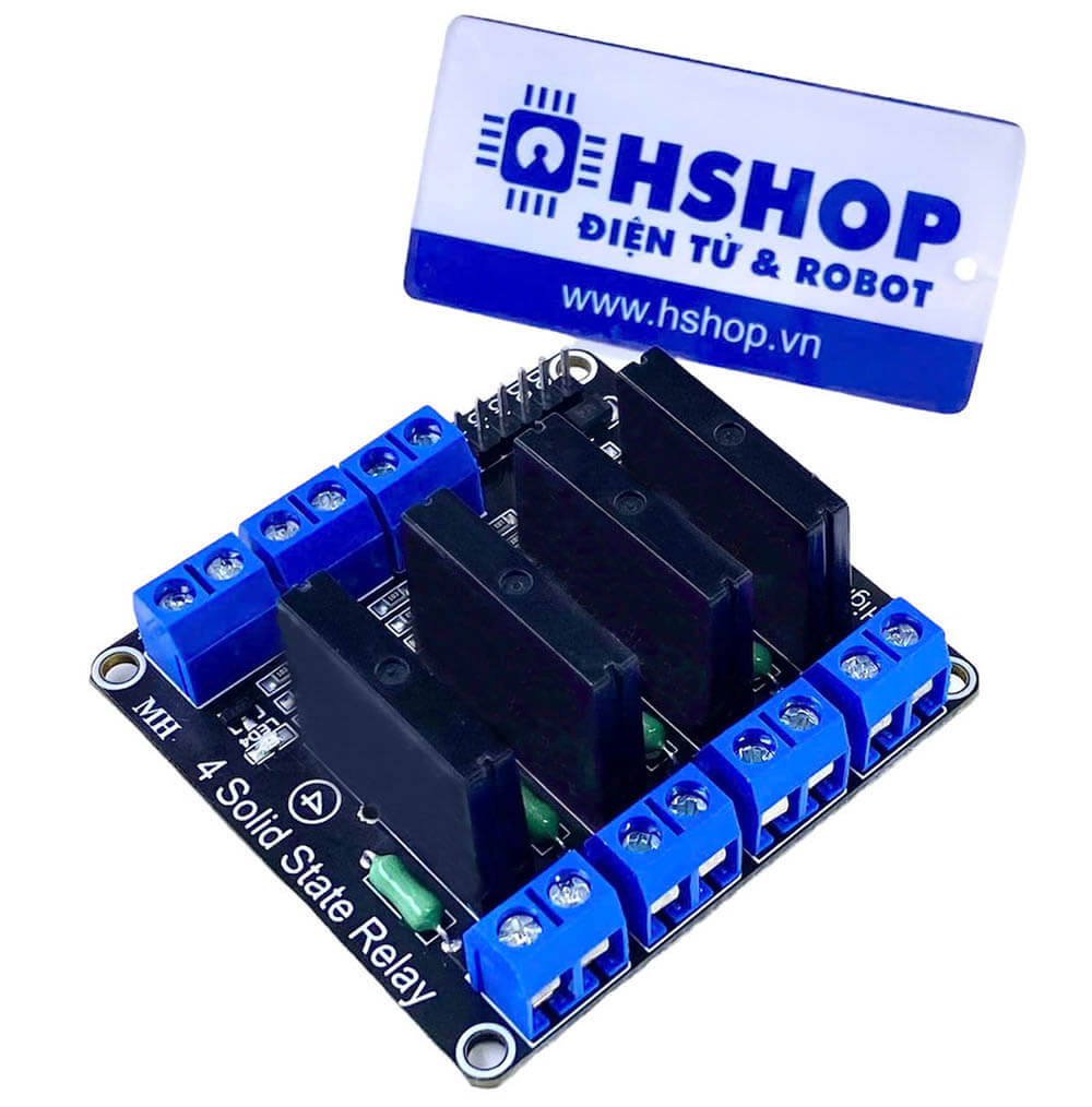 Mạch 4 Solid State Relay SSR 2A/240VAC sử dụng tín hiệu và nguồn nuôi 5VDC để kích Relay hoạt động đóng ngắt điện thế tối đa 240VAC/2A, lưu ý mạch chỉ dùng để đóng ngắt tải AC, không sử dụng được để đóng ngắt tải DC, trong Relay SSR có tích hợp sẵn opto cách ly (photo triac) nên sử dụng với nguồn AC rất an toàn.