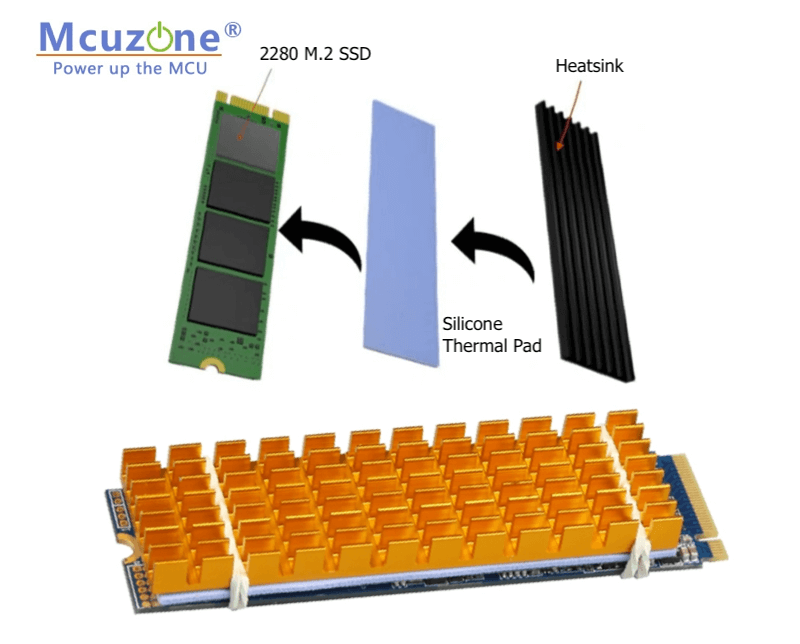 Tản nhiệt cho ổ cứng M.2 NVMe PCIe SSD 2280 Heatsink được sử dụng với các ổ cứng SSD M.2 chuẩn 2280 giúp tản nhiệt ổ cứng hiệu quả để chạy trong thời gian dài, tản nhiệt đi kèm tấm dẫn nhiệt Silicone Themal Pad và dây cố định tản nhiệt với ổ cứng.