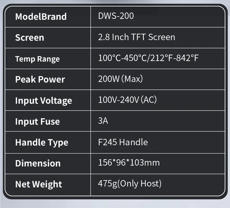 FNIRSI® DWS-200 F245 200W High Power Smart Soldering Station được tích hợp màn hình 2.8 inch tiện lợi thiết lập và theo dõi các thông số, thuật toán PID giúp kiểm soát nhiệt độ cân bằng tối đa với thời gian chờ chảy thiếc chỉ mất 3s, đế gác mỏ hàn thông minh với chế độ nghỉ tự động bảo vệ mỏ hàn. DWS-200 là công cụ không thể thiếu cho cả những người thợ chuyên nghiệp và người đam mê kỹ thuật điện tử, DIY.
