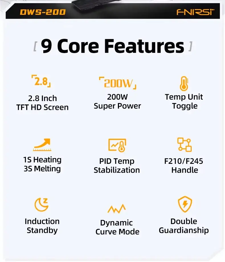 FNIRSI® DWS-200 F245 200W High Power Smart Soldering Station là trạm hàn chính xác công suất cao 200W được thiết kế với các tính năng thông minh để đáp ứng nhu cầu hàn điện tử với hiệu suất vượt trội.