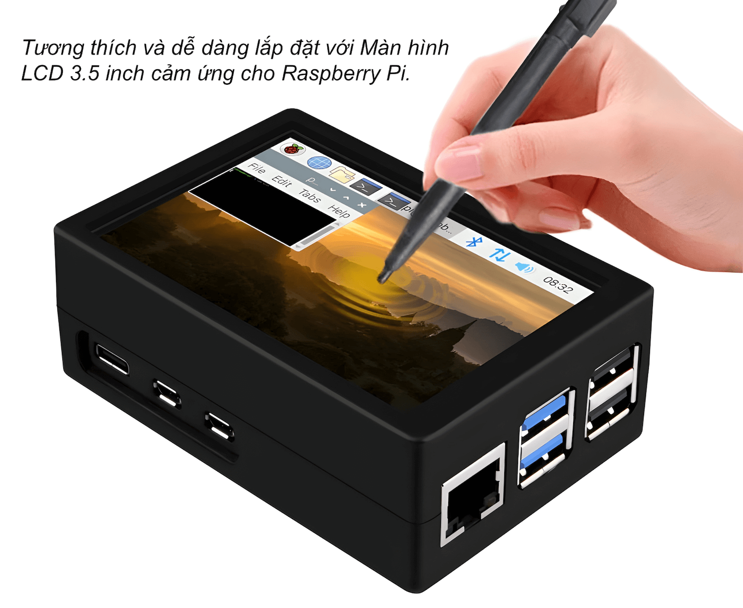 Một điểm vô cùng đặc biệt là Vỏ bảo vệ bằng nhựa ABS Case for Raspberry Pi 5 V2 còn được thiết kế để có thể lắp đặt với Màn Hình LCD 3.5 inch Raspberry Pi Cảm Ứng Điện Trở