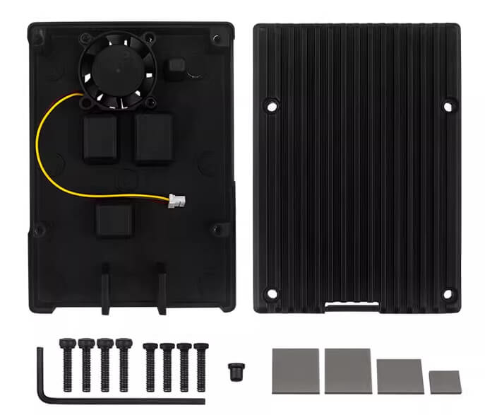 Vỏ bảo vệ nhôm kèm quạt Aluminum Case with PWM Fan for Raspberry Pi 5 được chế tác từ nhôm nguyên khối cao cấp, mang lại độ bền chắc chắn, tản nhiệt hiệu quả và vẻ ngoài sang trọng cho Raspberry Pi 5. Thiết kế chính xác, ôm sát bo mạch, bảo vệ thiết bị khỏi va đập, bụi bẩn và nhiễu điện từ.