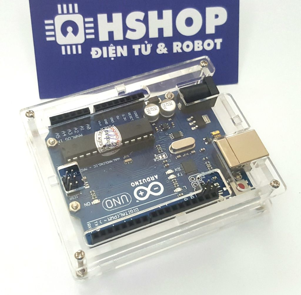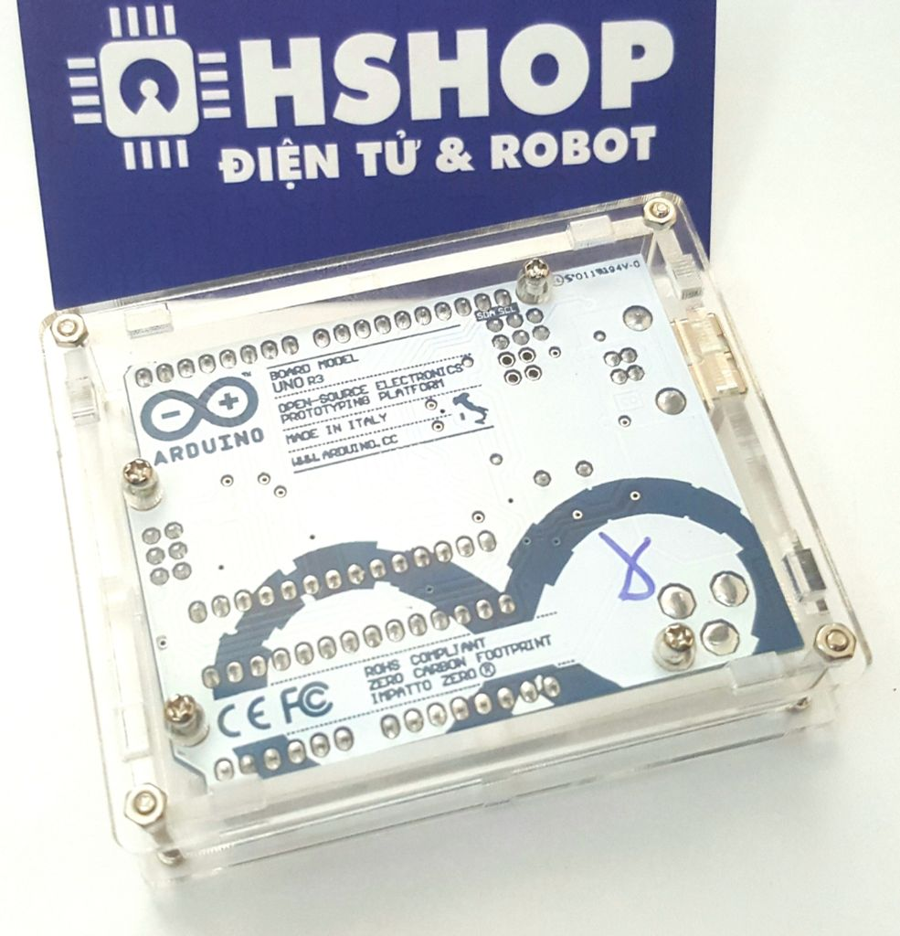 Vỏ Mica Arduino Uno Acrylic Case được thiết kế vừa vặn với Arduino Uno, có chừa ra sẵn các cổng kết nối và chân IO để thuận tiện cắm test các cảm biến, mạch điện khác.